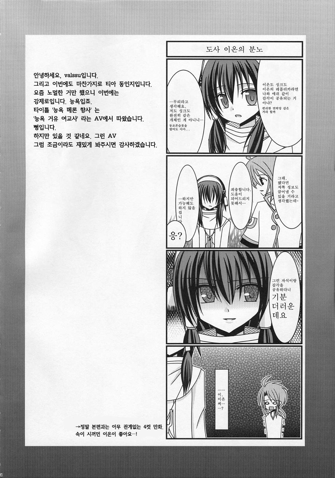 (C70) [valssu (Charu)] Ryoujyoku Melon Kyoushi (Tales of the Abyss) (korean)