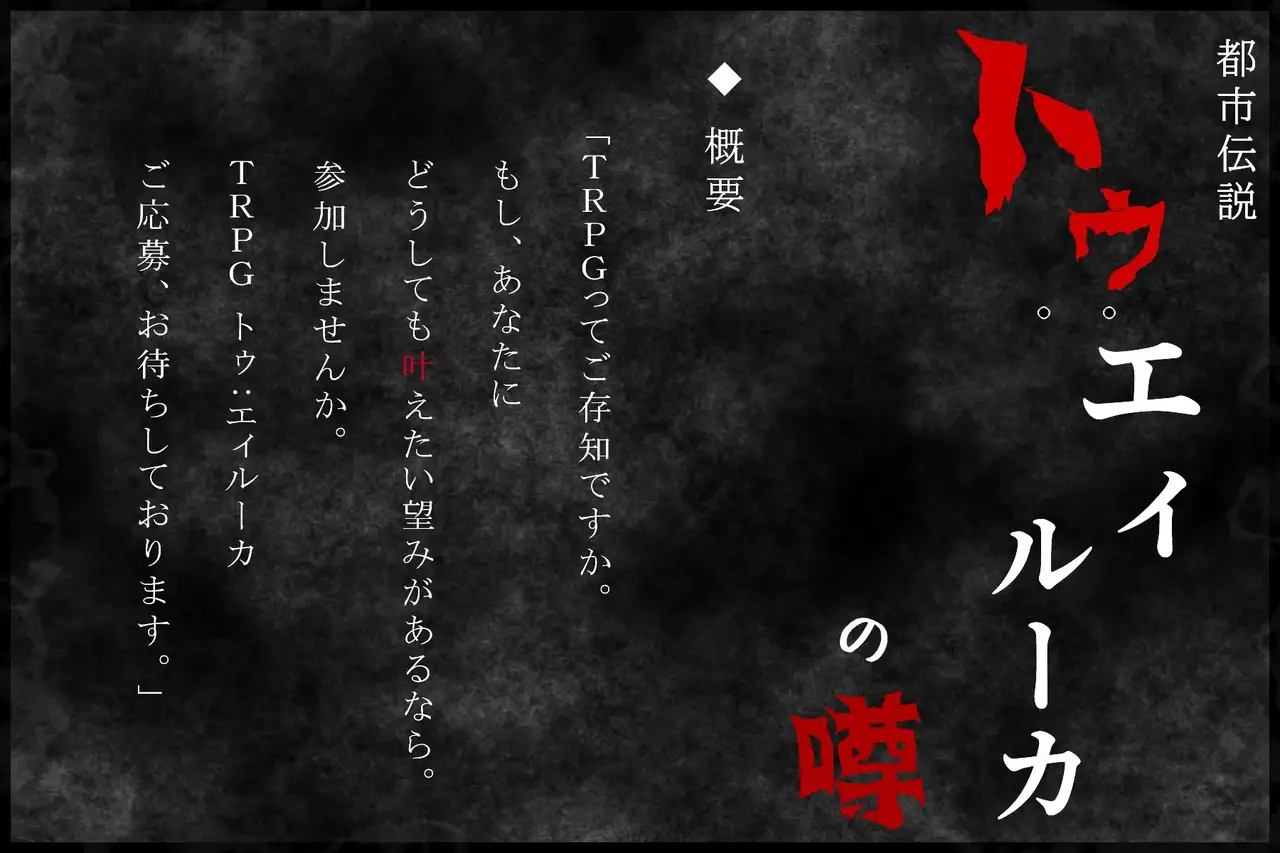 [ねじまき塔] 都市伝説TRPG トゥ:エィルーカの幻牢 《序》