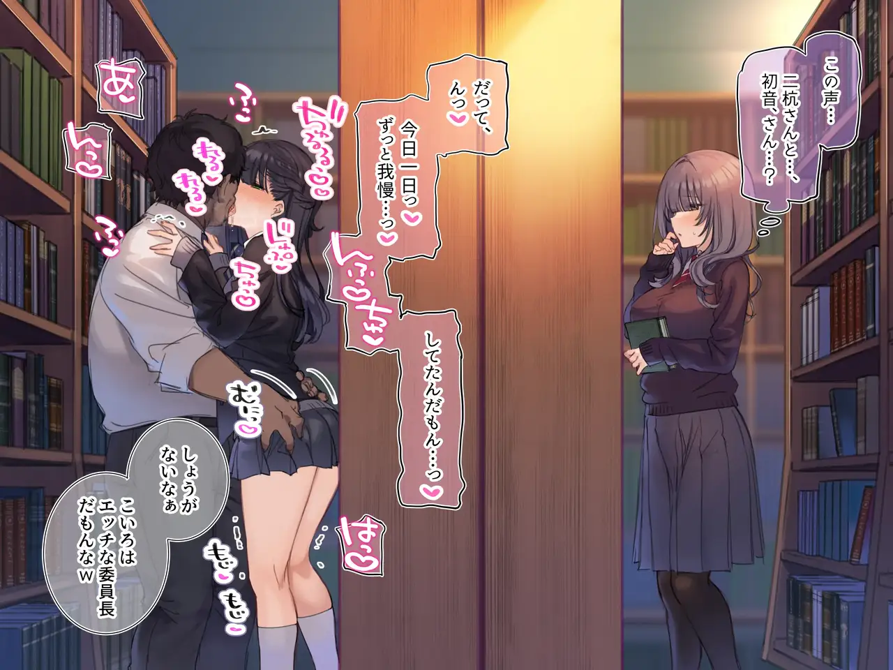 [満開開花] 図書室でセックスを見せつけられて隠れてオナニーしちゃう女の子