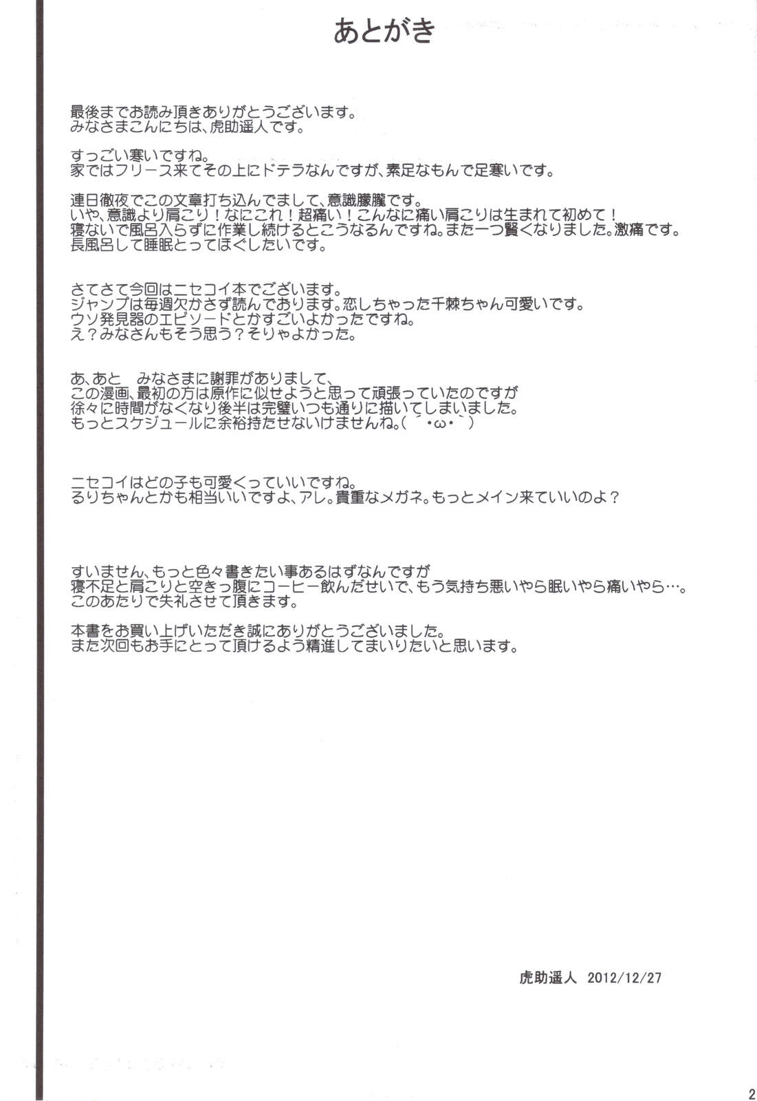 (C83) [セニマンカルタン (虎助遥人)] アシコキ (ニセコイ) [中国翻訳]