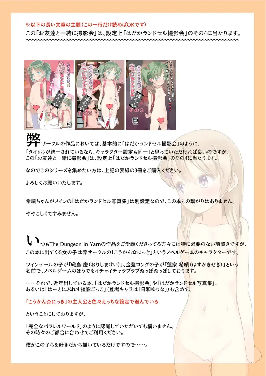 (C101) [The Dungeon in Yarn (与根金次)] こうかん☆にっき お友達と一緒に撮影会 [見本]