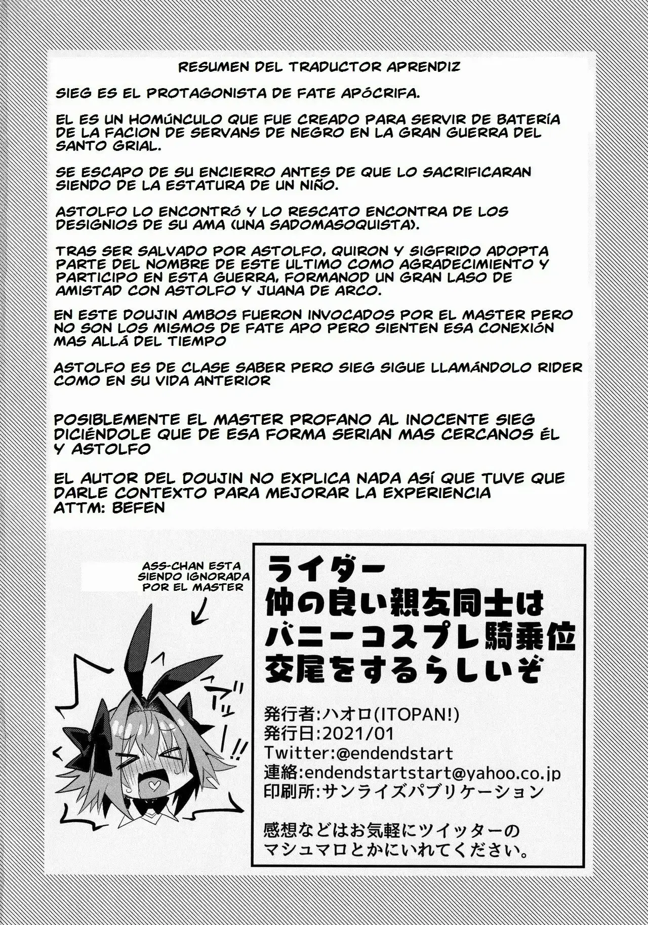 [ITOPAN! (HAORO)] Naka no Ii Shinyuu wa Bunny Cosplay Kijoui Koubi o Sururashii zo (Fate/Grand Order) [Spanish] [El-Traductor-Aprendiz]