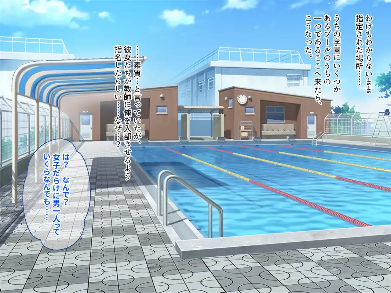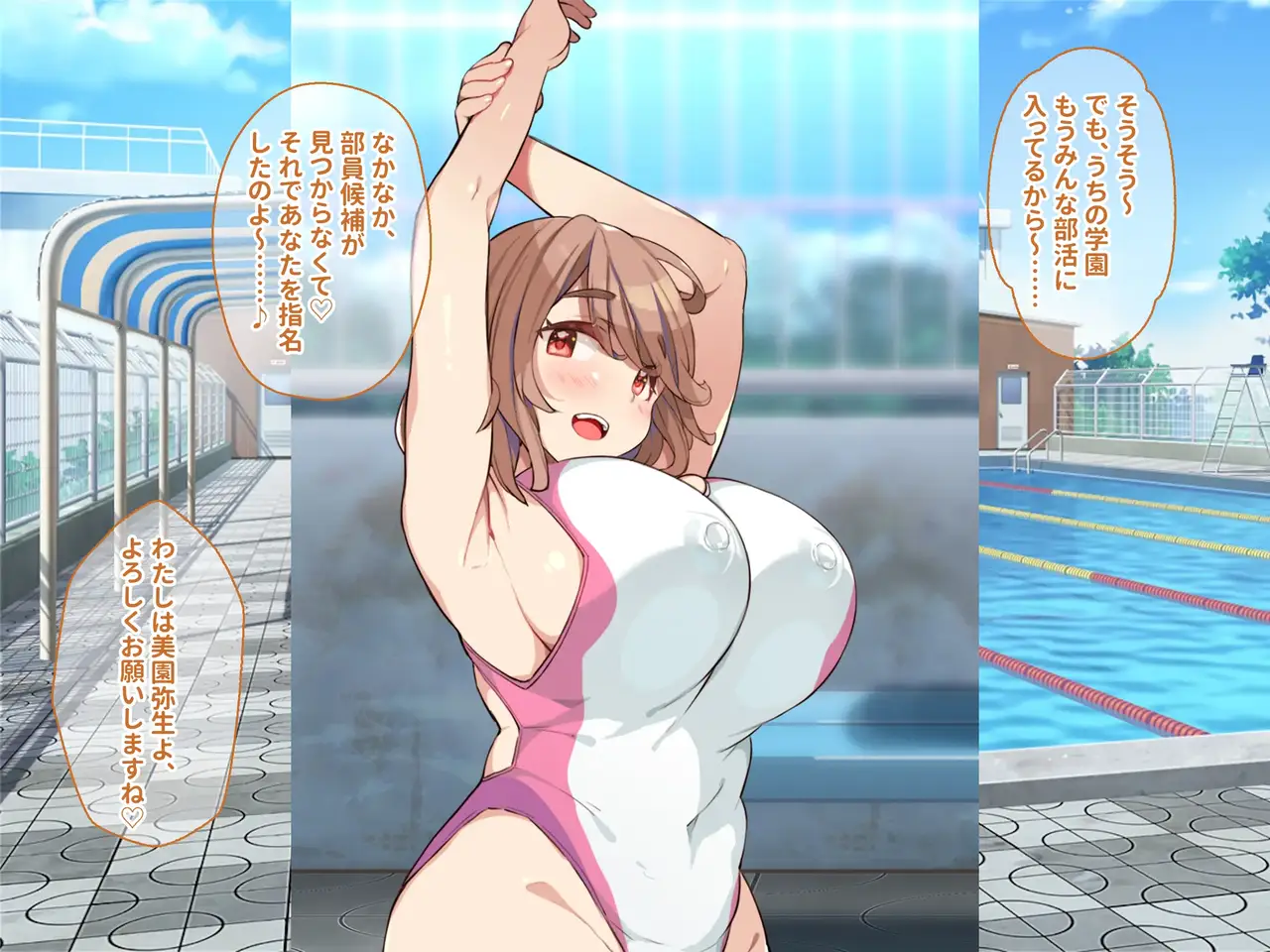[Porcini (Kibii Mocha)] Hatsujou-chuu no Kyonyuu JK Suieibuin-tachi to Tanetsuke Harem Sex Zanmai!! Joshi Suieibu ni Otoko Hitori Niku Vibe Atsukai Sareru Hibi