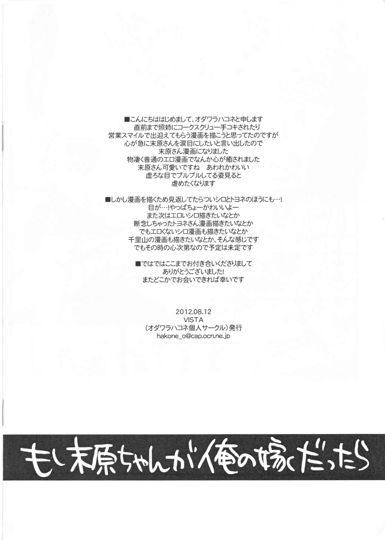 (C82) [VISTA (Odawara Hakone)] Moshi Suehara-chan ga Ore no Yome dattara (Saki)