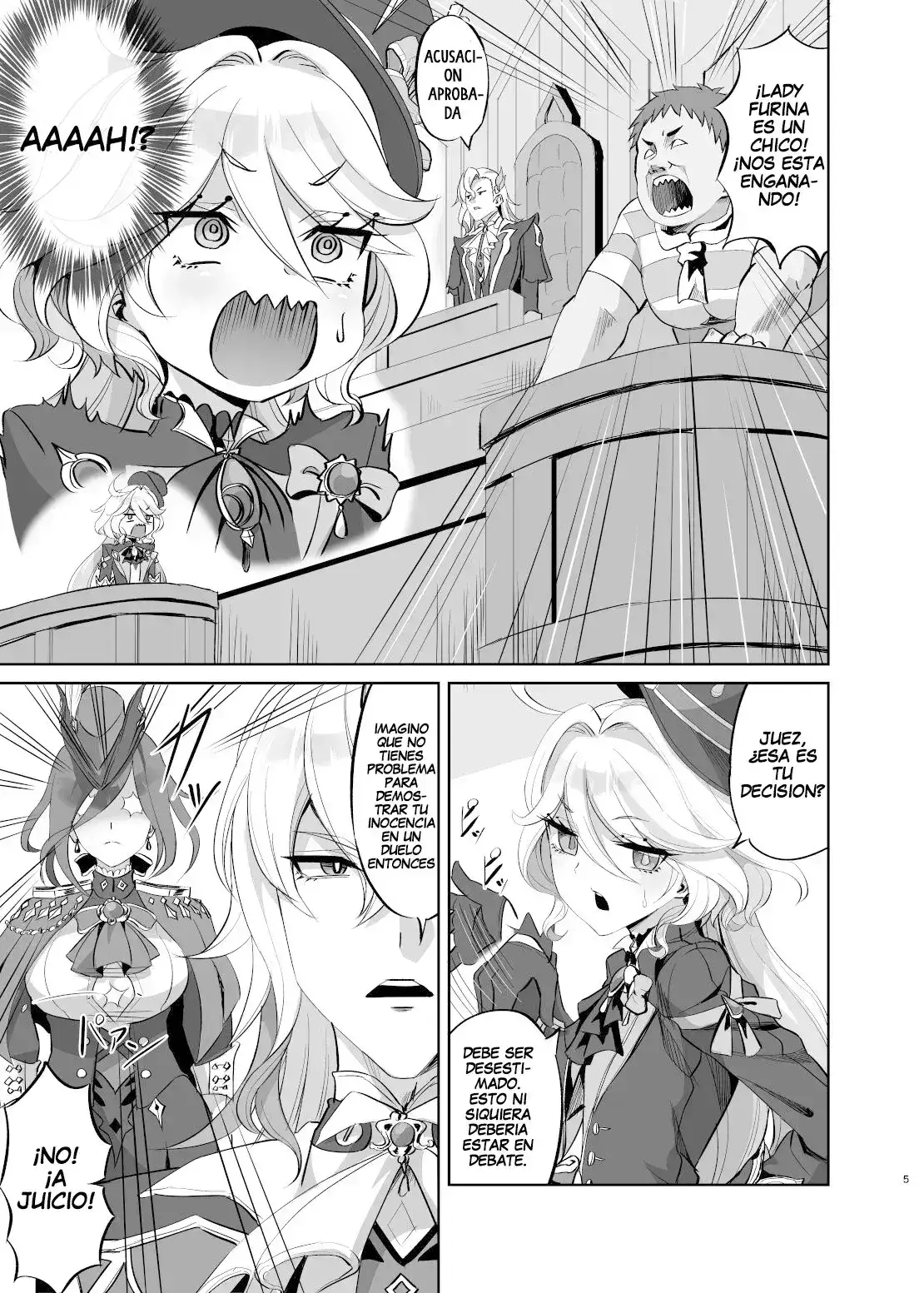 [キャンドゥーなう! (見習い雑兵)] 僕は男の子じゃないっ!~水神男性疑惑裁判議事録~ (原神) [スペイン翻訳] [DL版]