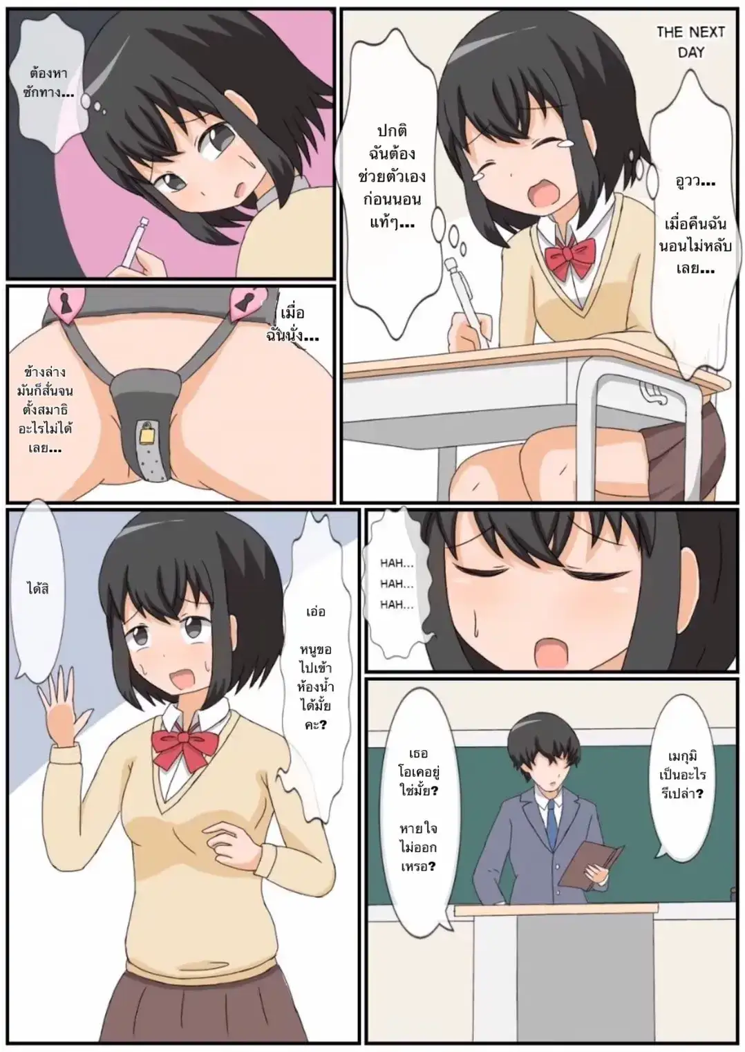 [あーくもすら] おなにー禁止生活!?えっち好きのJKが貞操帯で絶頂管理された結果… [タイ翻訳]
