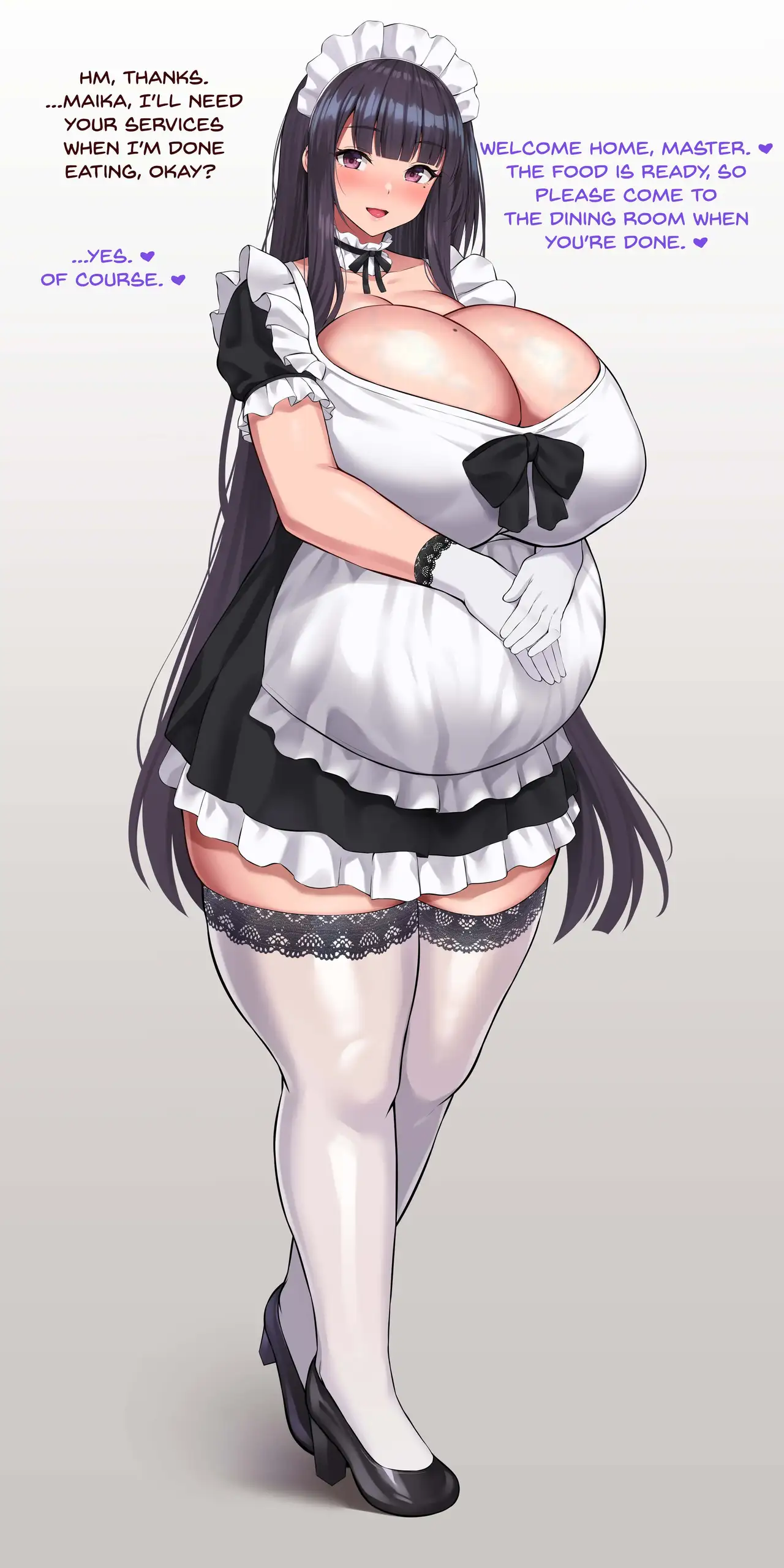 [ツンデレお肉 (ぽんち)] ボテメイドさん (立ち絵+搾乳手コキ) [英訳]