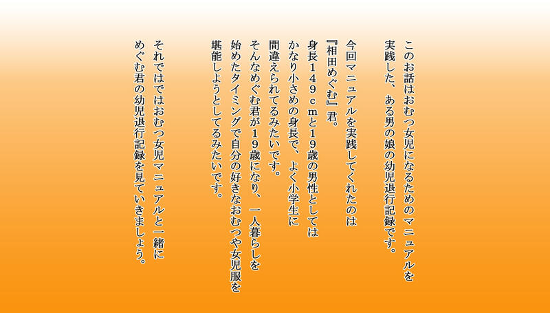 [同人ふぇち] おむつ女児化マニュアル ~普通の大学生から幼児退行しためぐむ君の記録~