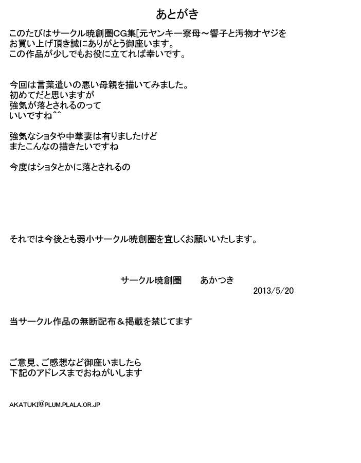 [暁創圏] 元ヤンキー寮母〜響子と汚物オヤジ
