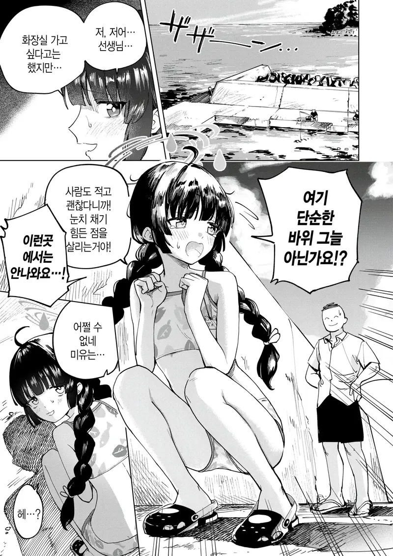 [ひとにたち] ミユと海でおしっこする漫画 (ブルーアーカイブ) [韓国翻訳]