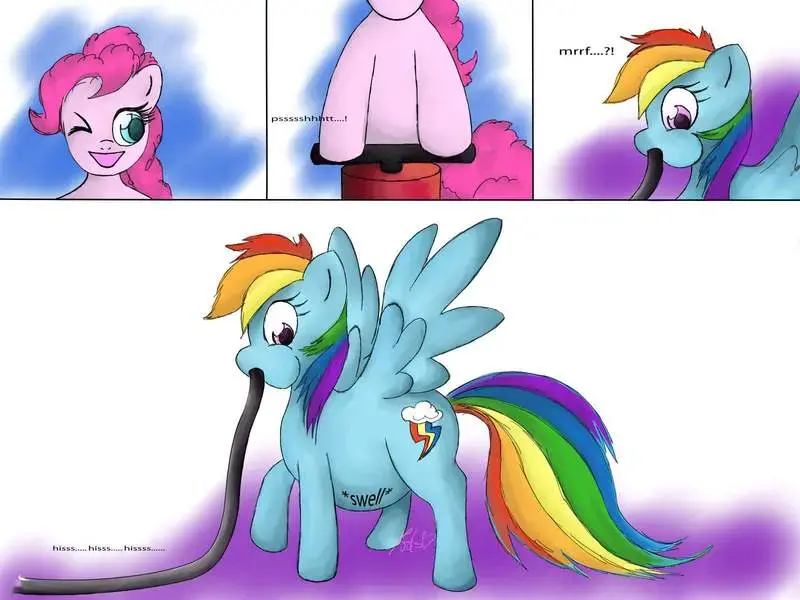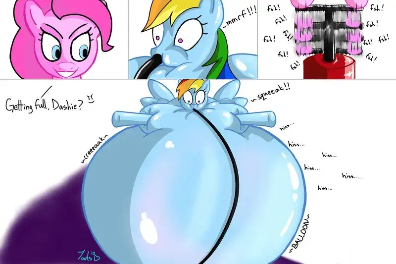 [toes] Rainbow dash belly inflation (POPPING)
