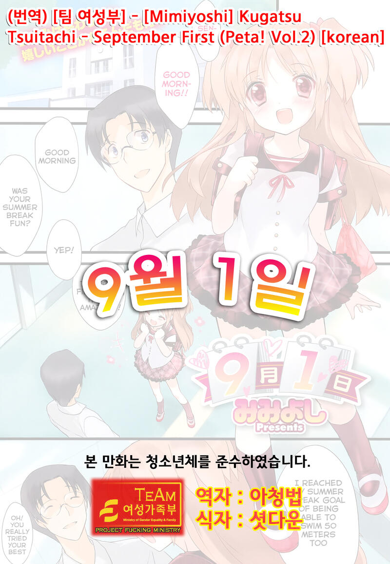 [Mimiyoshi] Kugatsu Tsuitachi | 9월 1일t (Peta! Vol.2) [Korean] [Team 여성가족부]