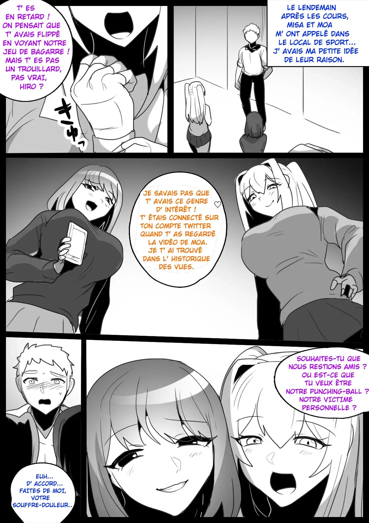 [The Nation of Head Scissors (kubi4, Toppogi)] Onaji Class no Onna Tomodachi ni Maso Bare shite, Sandbag Dorei ni Otosareta Hanashi. | Je suis devenu l'esclave, un vrai punching-ball par deux filles de ma classe qui ont découvert que j'étais maso [French]
