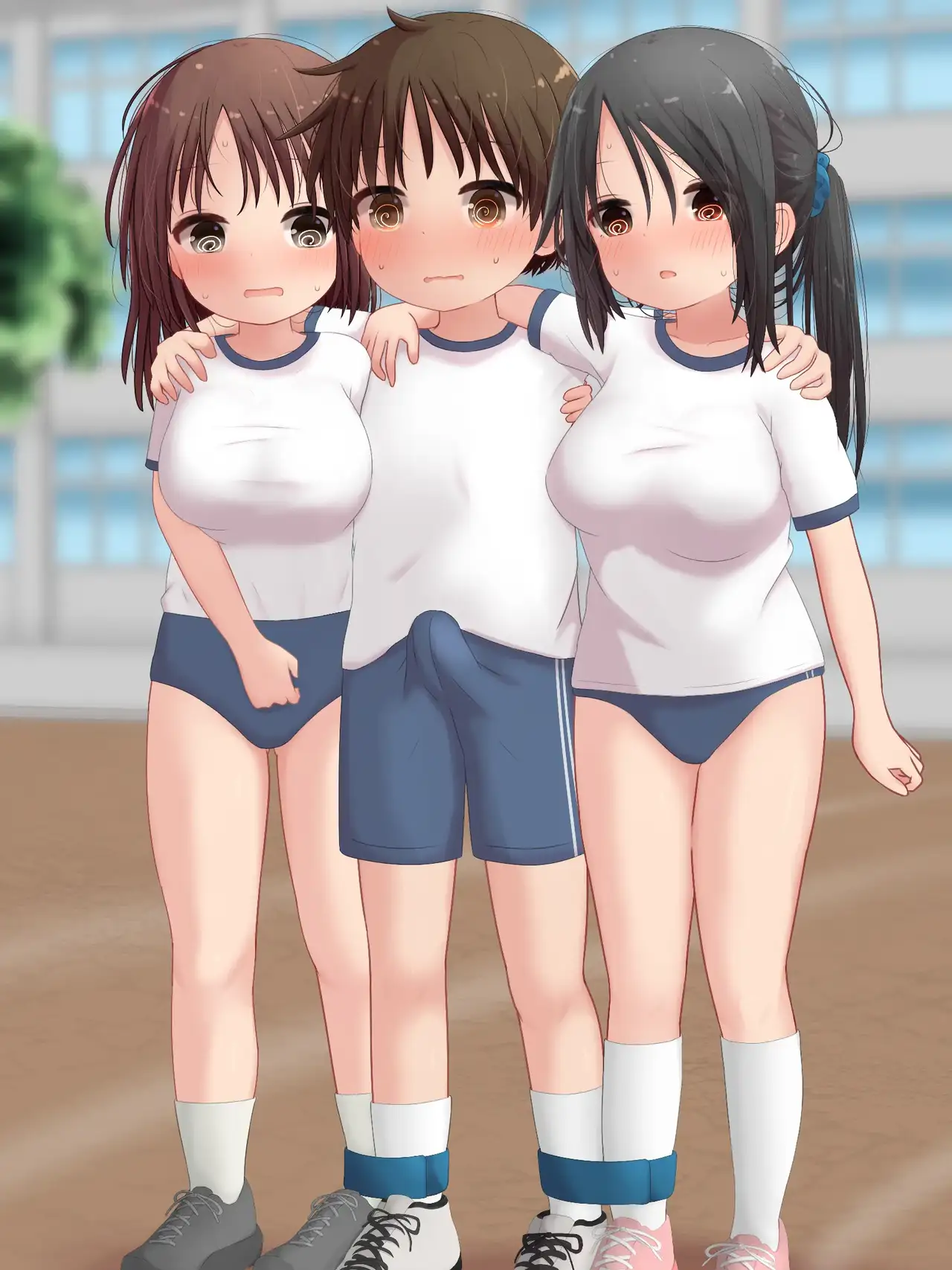 [はんぶん虚弱] Skebで描いた巨乳さんどいっち3人4脚