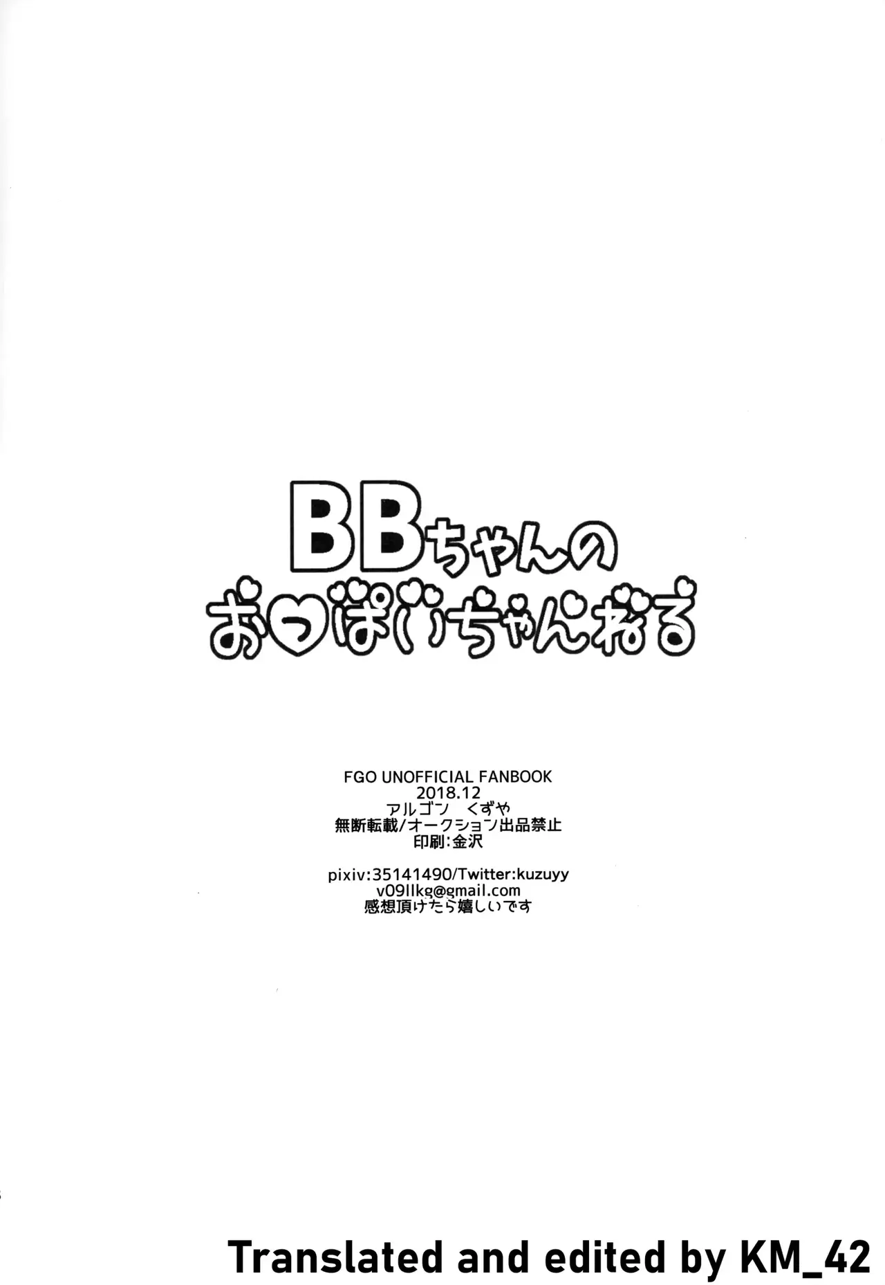 (C95) [アルゴン (くずや)] BBちゃんのおっぱいちゃんねる (Fate/Grand Order) [英訳]