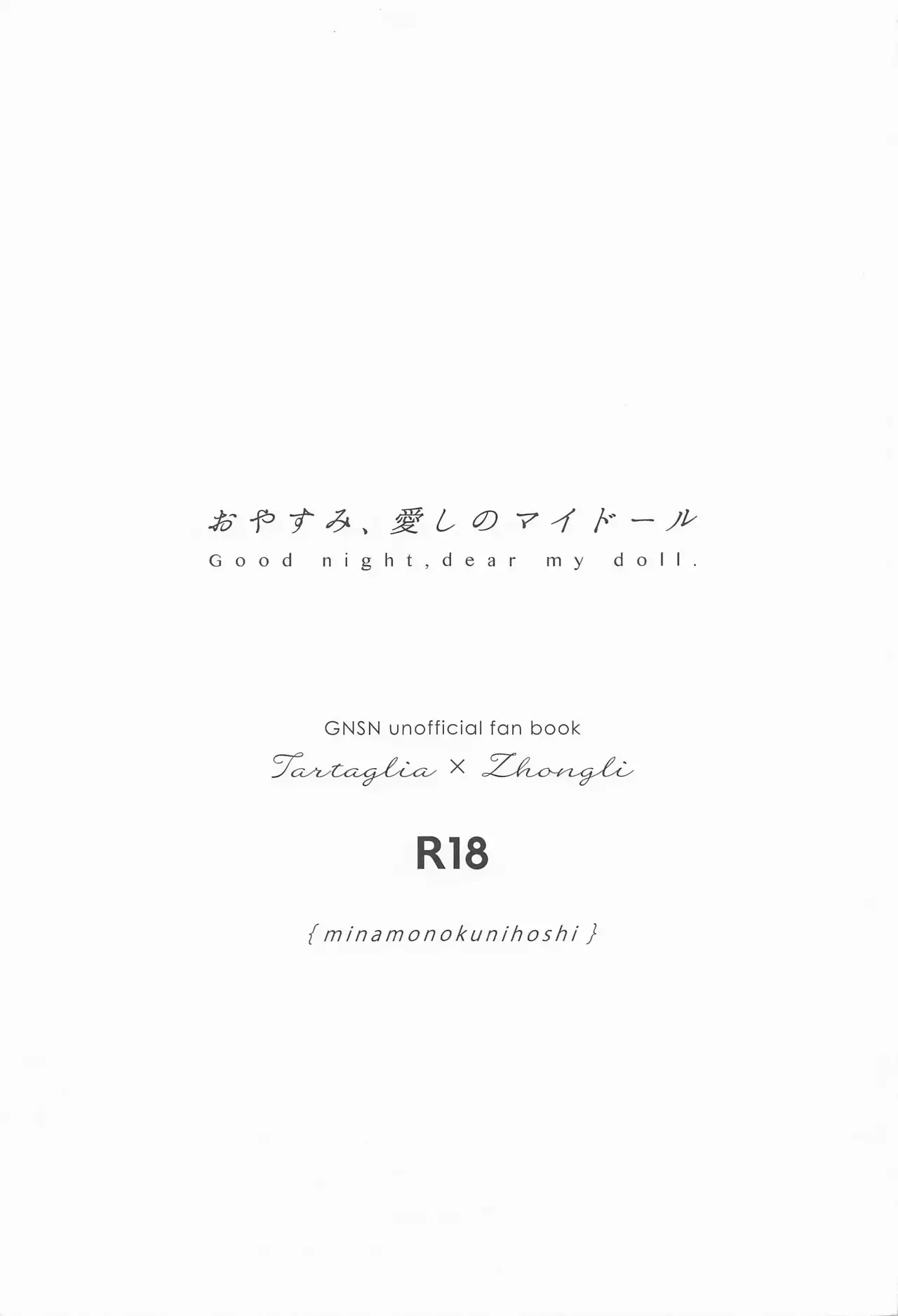 (Kami no Eichi 4) [minamonokunihoshi (Kasugai)] Oyasumi, Aishi no My Doll - Good night, dear my doll. (Genshin Impact)