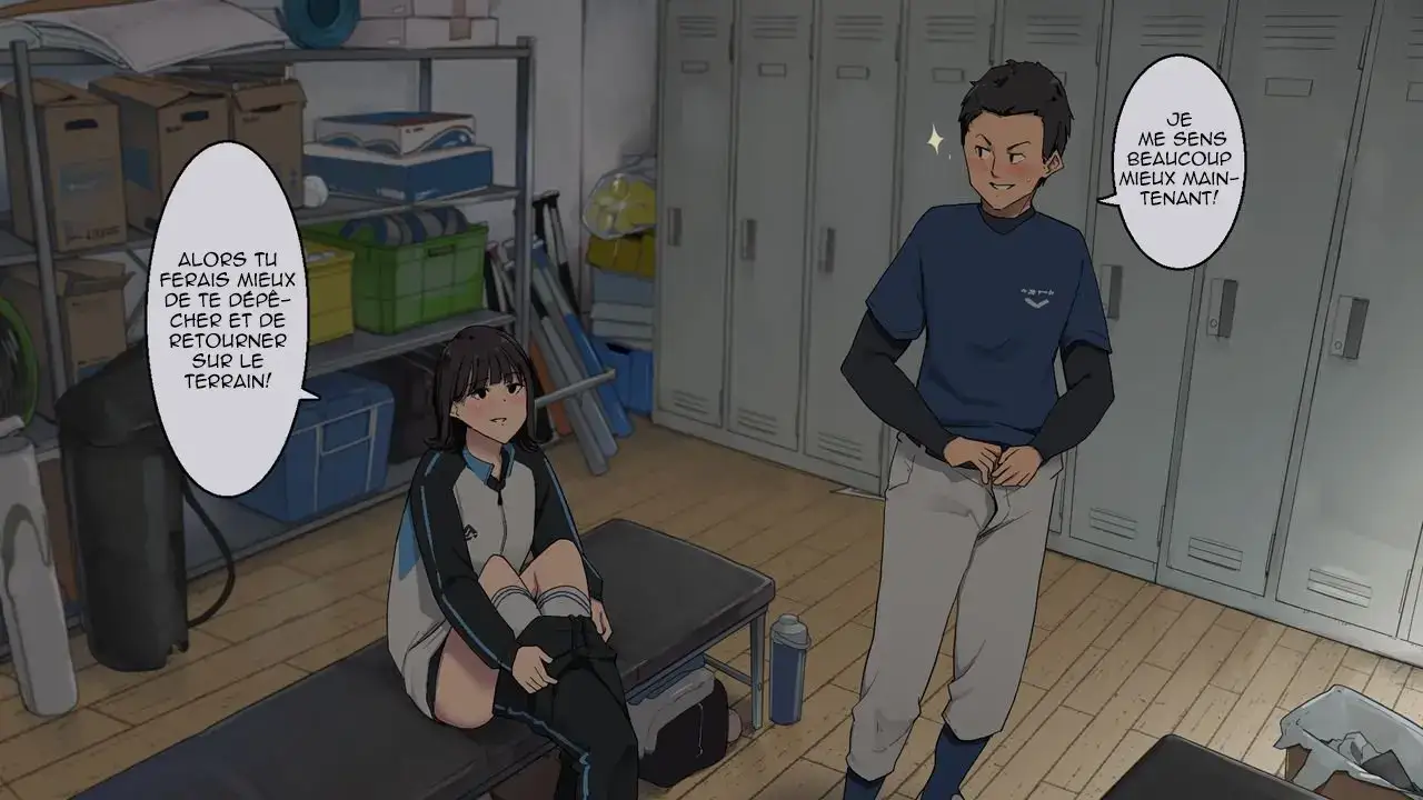 [わかまつ] 付き合ってる先輩女子マネージャーに部室で抜いてもらう [フランス翻訳]