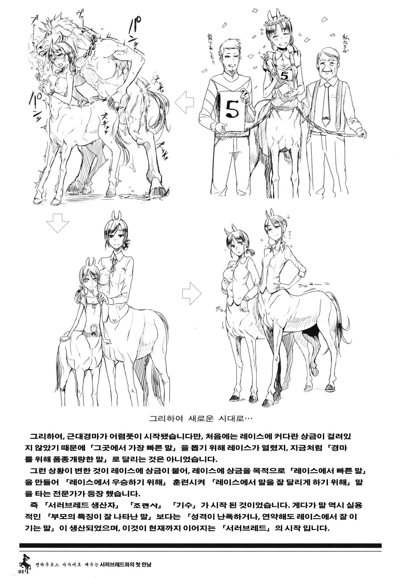 (C83) [Hyakki Yakou (Z-ton)] Centaur Musume de Manabu Hajimete no Thoroughbred [Korean]