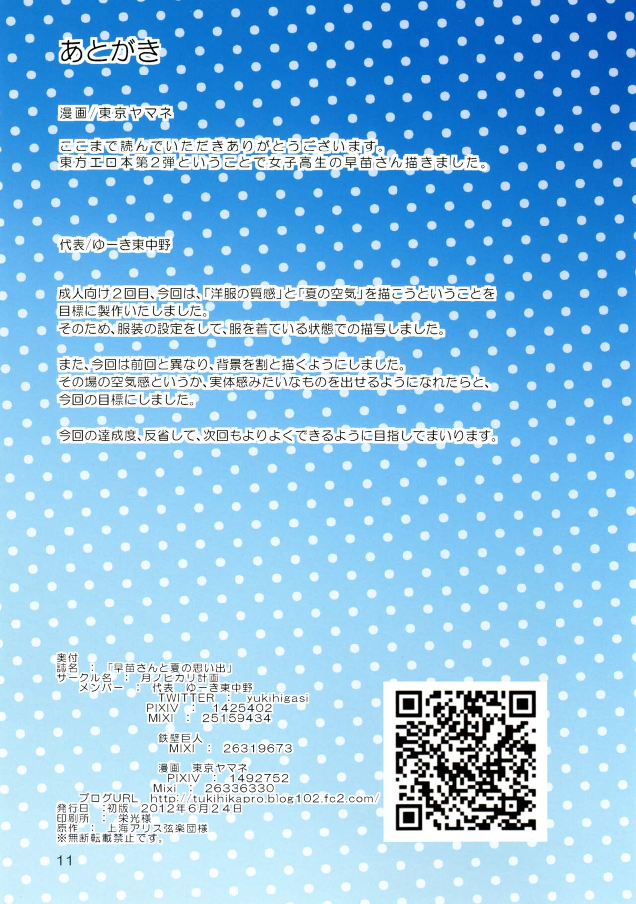 [月ノヒカリ計画 (ゆーき東中野、東京ヤマネ、鉄壁巨人)] 早苗さんと夏の思い出。 (東方Project) [DL版]
