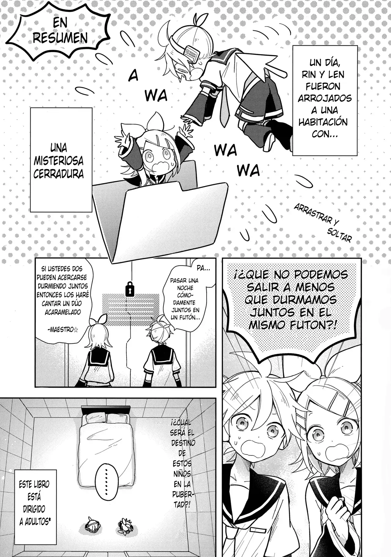 (Kagamine Kotoha!) [Wonderland (suzumi)] Issho no Ofuton de Nenai to Derarenai Heya [Seijin Mukai] - Locked folder unless to sleep together (VOCALOID) [Spanish] [Ikki Gokaiger]
