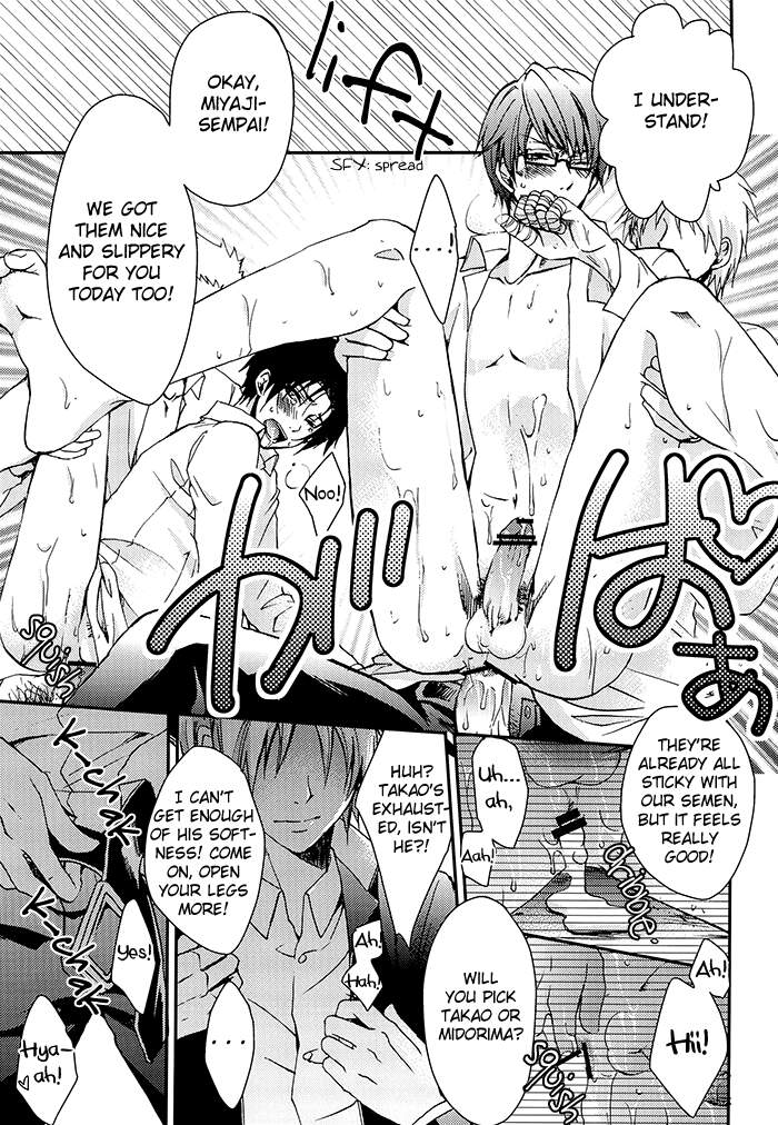 [Kuzumochi (Kuzuyu, Kuzukiri)] BARTER ~ Miyaji Senpai to Midorima-kun to Takao-kun wo Shuutoku Basuke Buin ga XXX suru Hanashi ~ (Kuroko no Basuke) [English] [Silver Lining]
