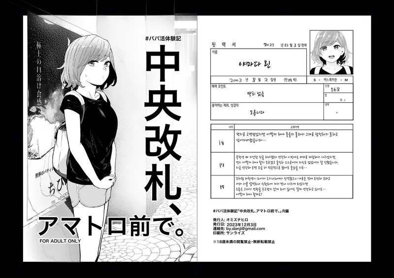 [Omizu Chihiro] #Papakatsu Taikenki "Chuuoukaisatsu, Amatoro Mae de." R Hen + #Papakatsu Taikenki "Chuuoukaisatsu, Amatoro Mae de." Aki Hen + #Papakatsu Taikenki "Chuuoukaisatsu, Amatoro Mae de." Marina Hen | #파파카츠 체험기 중앙 개찰구 아마토구 앞에서 [Korean] [Digital]