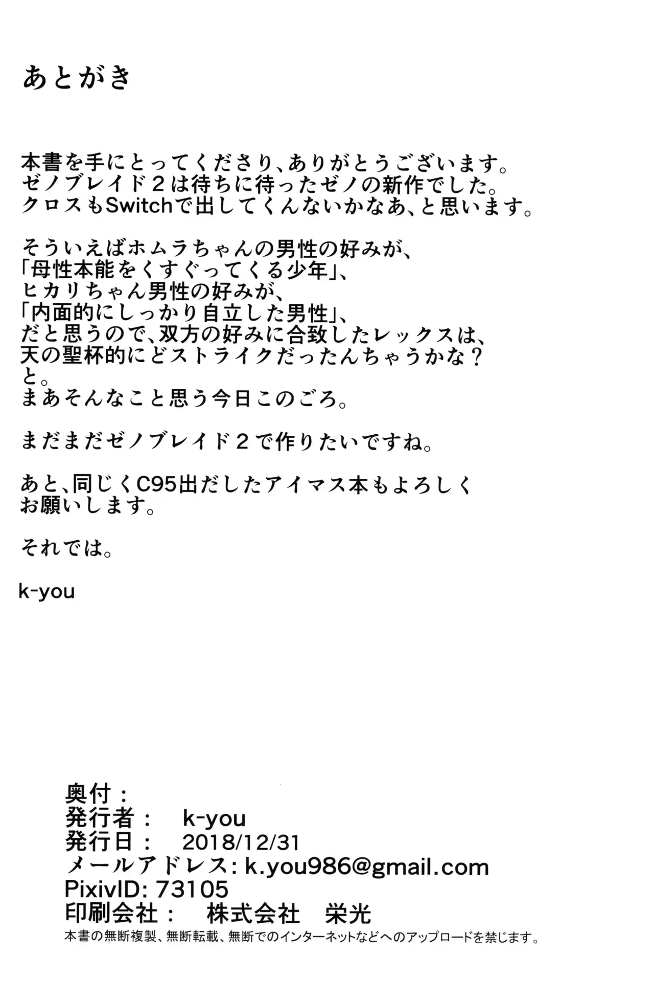 (C95) [白い闇 (k-you)] ヨイユメ (ゼノブレイド2) [中国翻訳]