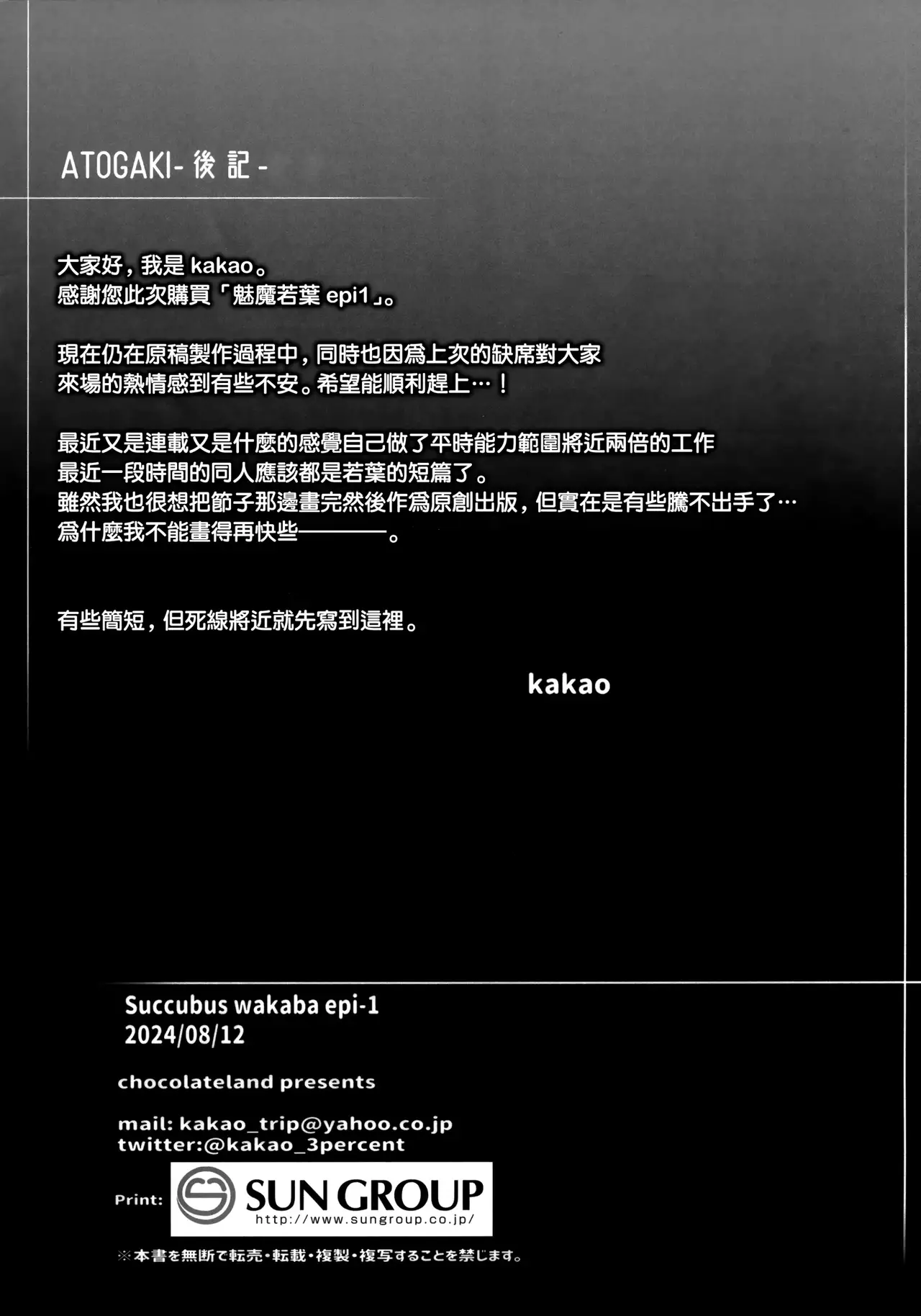 (C104) [ちょこれーとらんど (kakao)] サキュバス・ワカバ epi-1 [中国翻訳]
