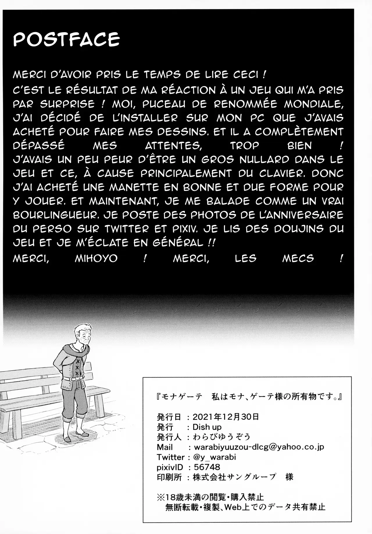 (C99) [Dish up (Warabi Yuuzou)] Mona-Gete Watashi wa Mona, Gete-sama no Shoyuubutsu desu. (Genshin Impact) [French] [O-S]