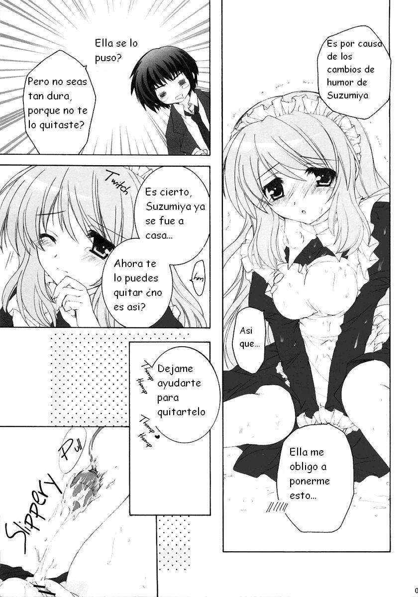 (C71) [Pyonpyororin (Akoko.)] Ano... Naisho ni shite kudasai ne? (The Melancholy of Haruhi Suzumiya) [Spanish] [Kurotao]