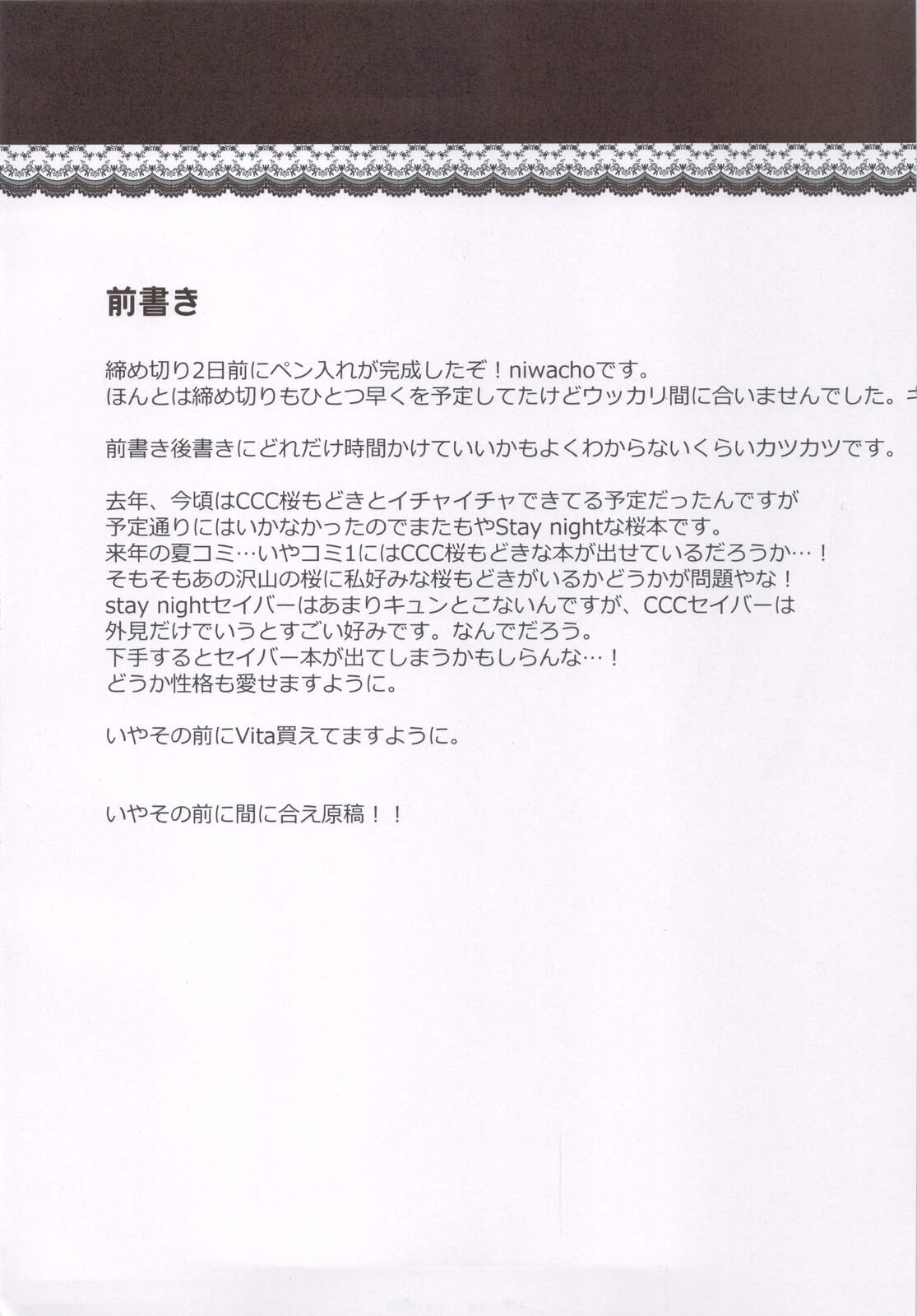 (C83) [TRIP SPIDER (niwacho)] ヨイトコ 宵床 (Fate/stay night)