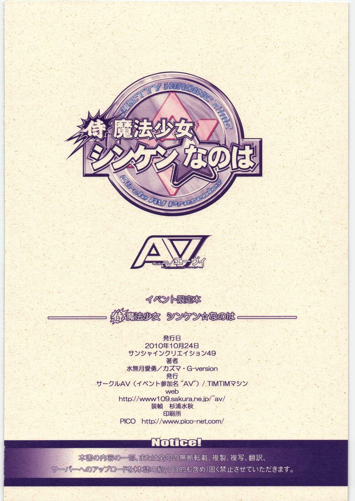 (サンクリ49) [サークルAV (水無月愛勇, カズマ・G-Version)] 侍魔法少女 シンケンなのは (よろず)