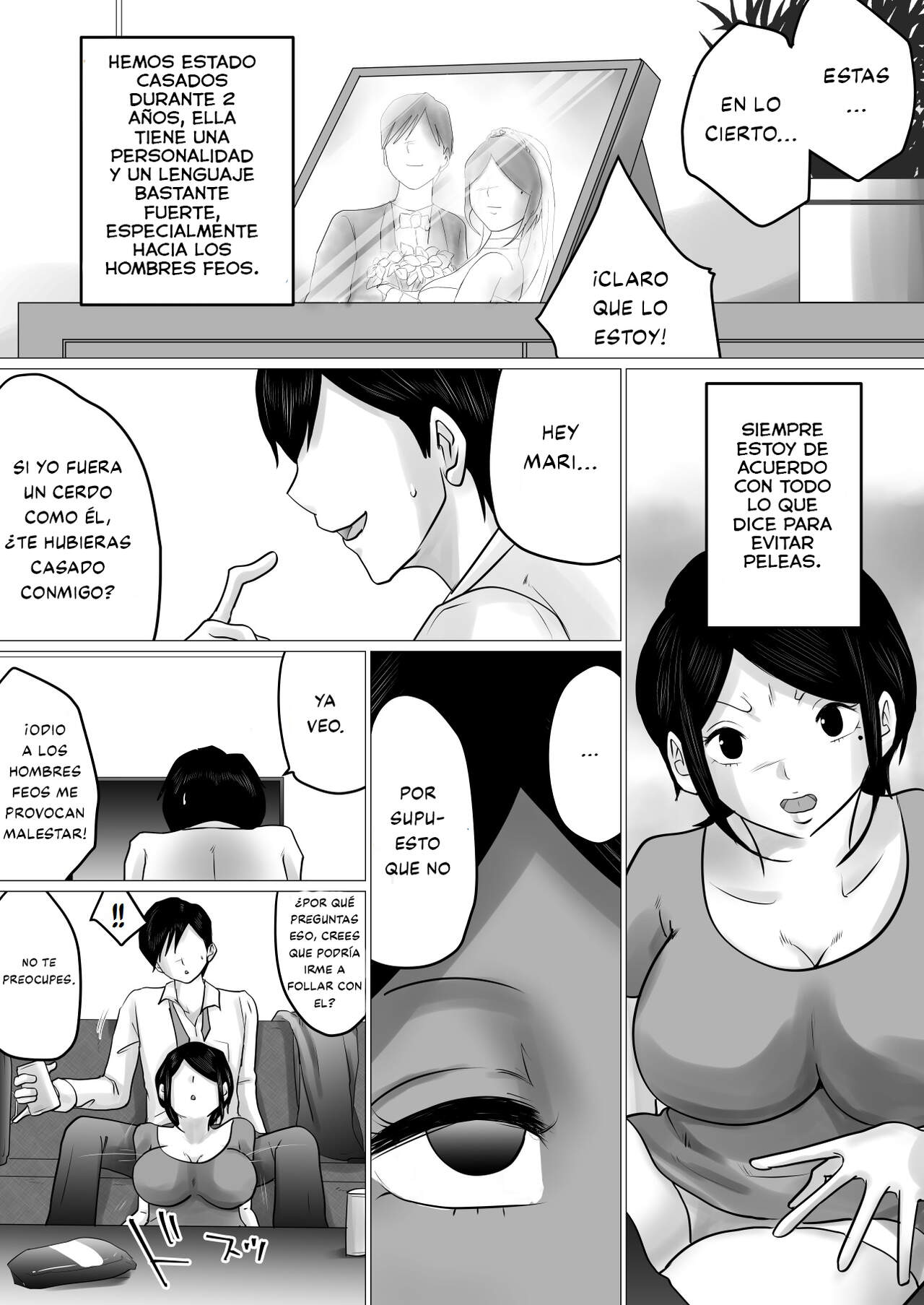 [Makoto Shiyaka] Menkui Kouman Tsuma ga Partsaki no Kimobuta Joushi ni Otosareta Keii | Esposa Arrogante que odia a los hombres feos se enamora de su feo jefe. [Spanish] [JhonHengontai]