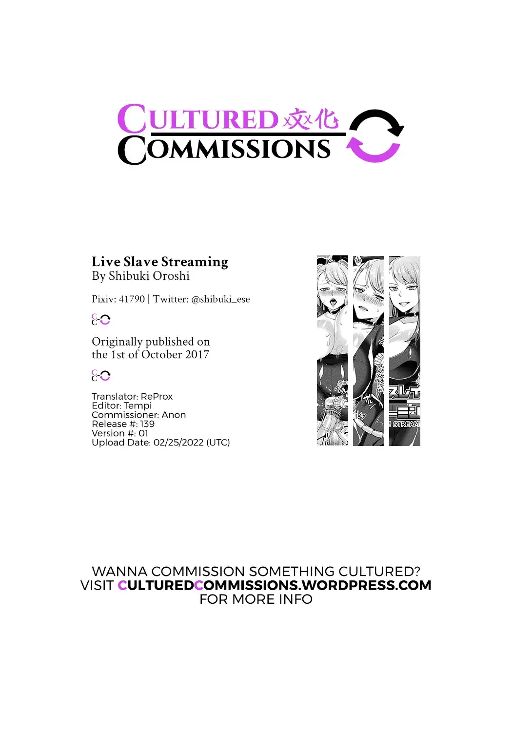 [Shibuki Oroshi] Live Slave Streaming (Toraware Ikasare Otosarete) [English] [CulturedCommissions] [Digital]