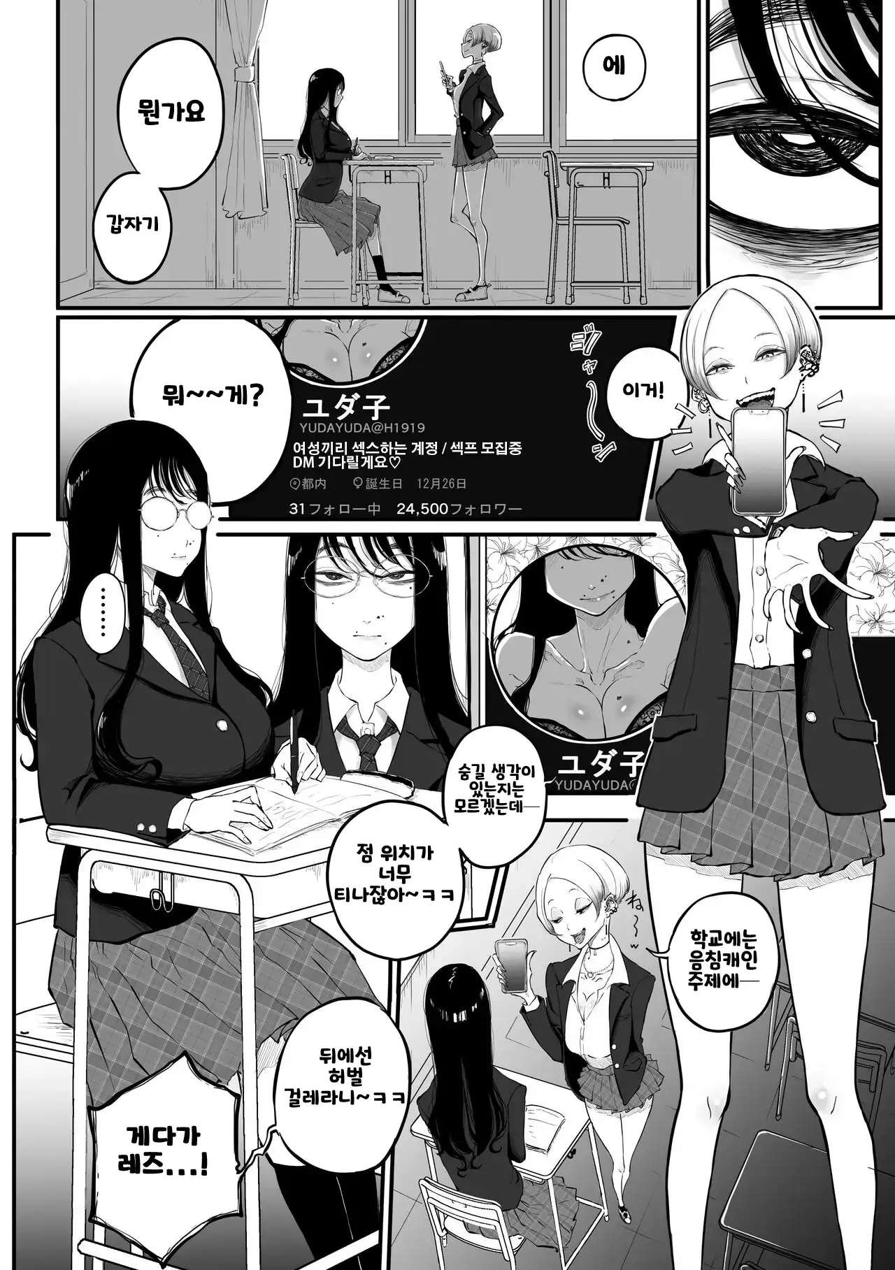 [Sky Dogma (ぱんだこりゃ)] 陰キャの裏垢を見つけたギャルが馬鹿にしてからかう話 [韓国翻訳]