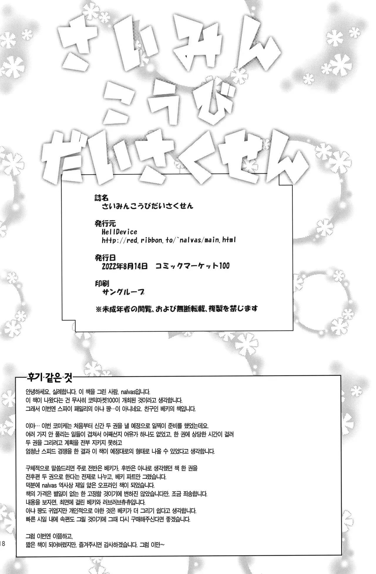 (C100) [HellDevice (nalvas)] さいみんこうびだいさくせん (SPY×FAMILY) [韓国翻訳]