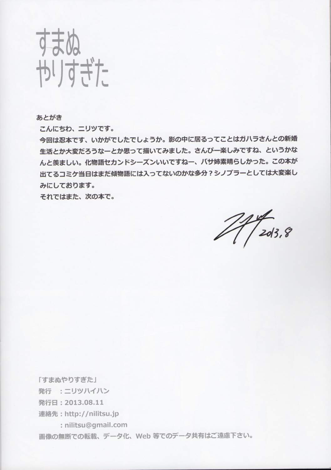 (C84) [ニリツハイハン (ニリツ)] すまぬやりすぎた (化物語)