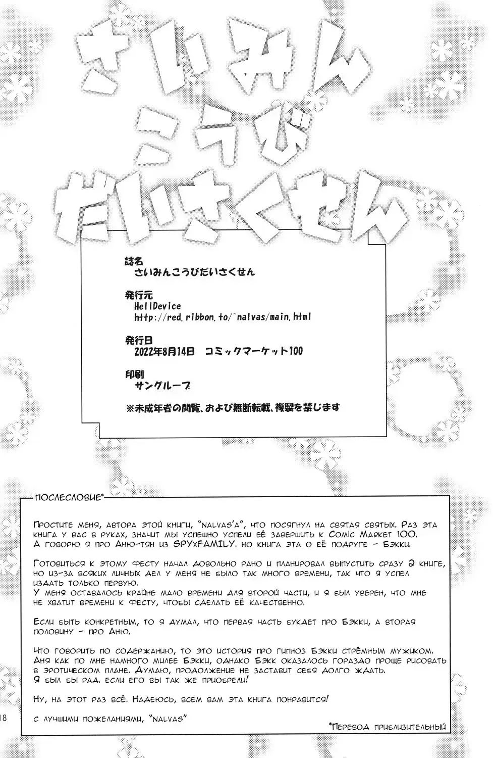 (C100) [HellDevice (nalvas)] さいみんこうびだいさくせん (SPY×FAMILY) [ロシア翻訳]