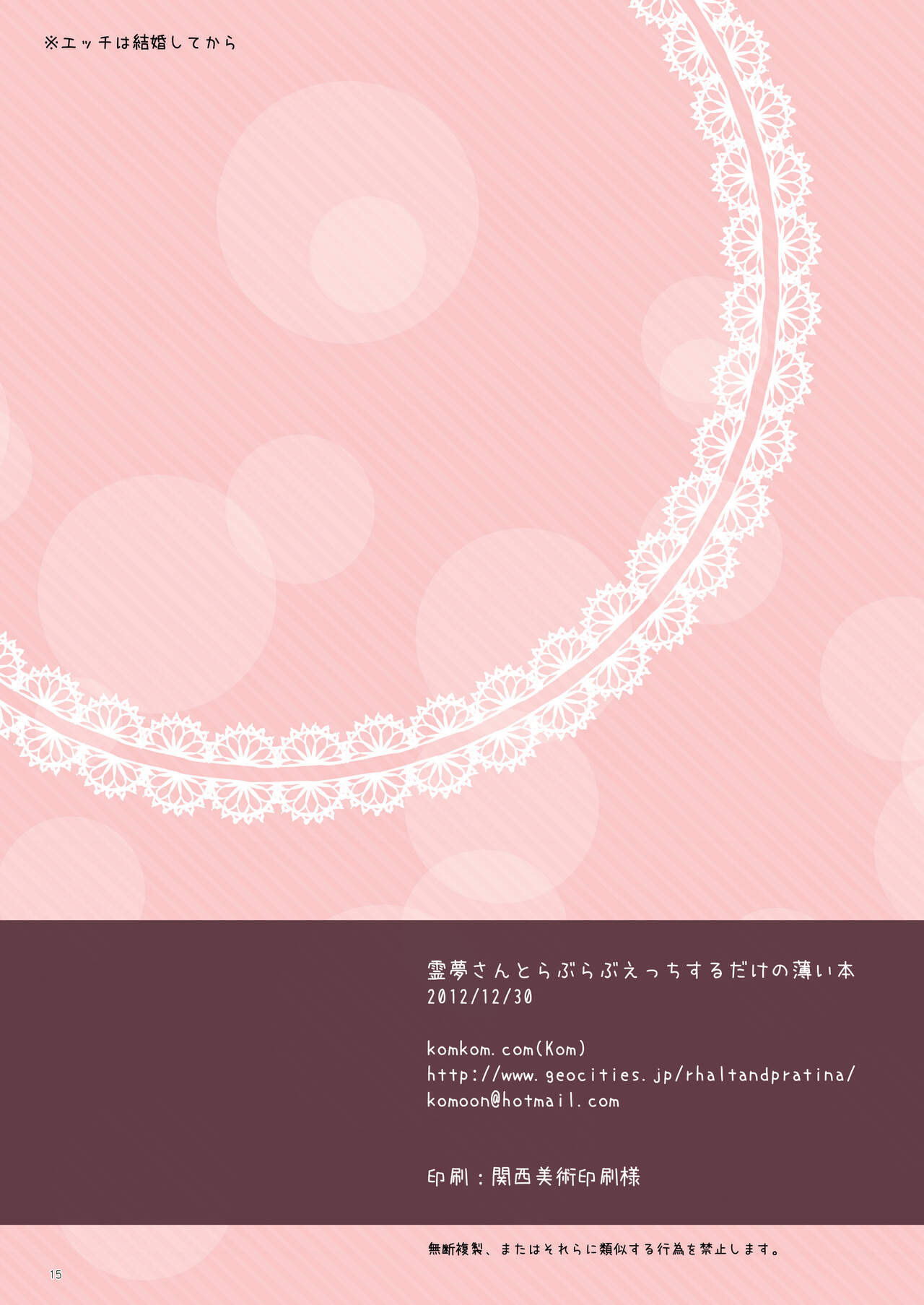 [komkom.com (Kom)] 霊夢さんとらぶらぶえっちするだけの薄い本 (東方Project) [DL版]
