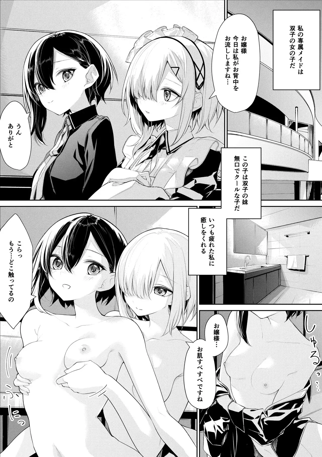 [ざんか] お風呂でイチャイチャするお嬢様と双子メイドさん