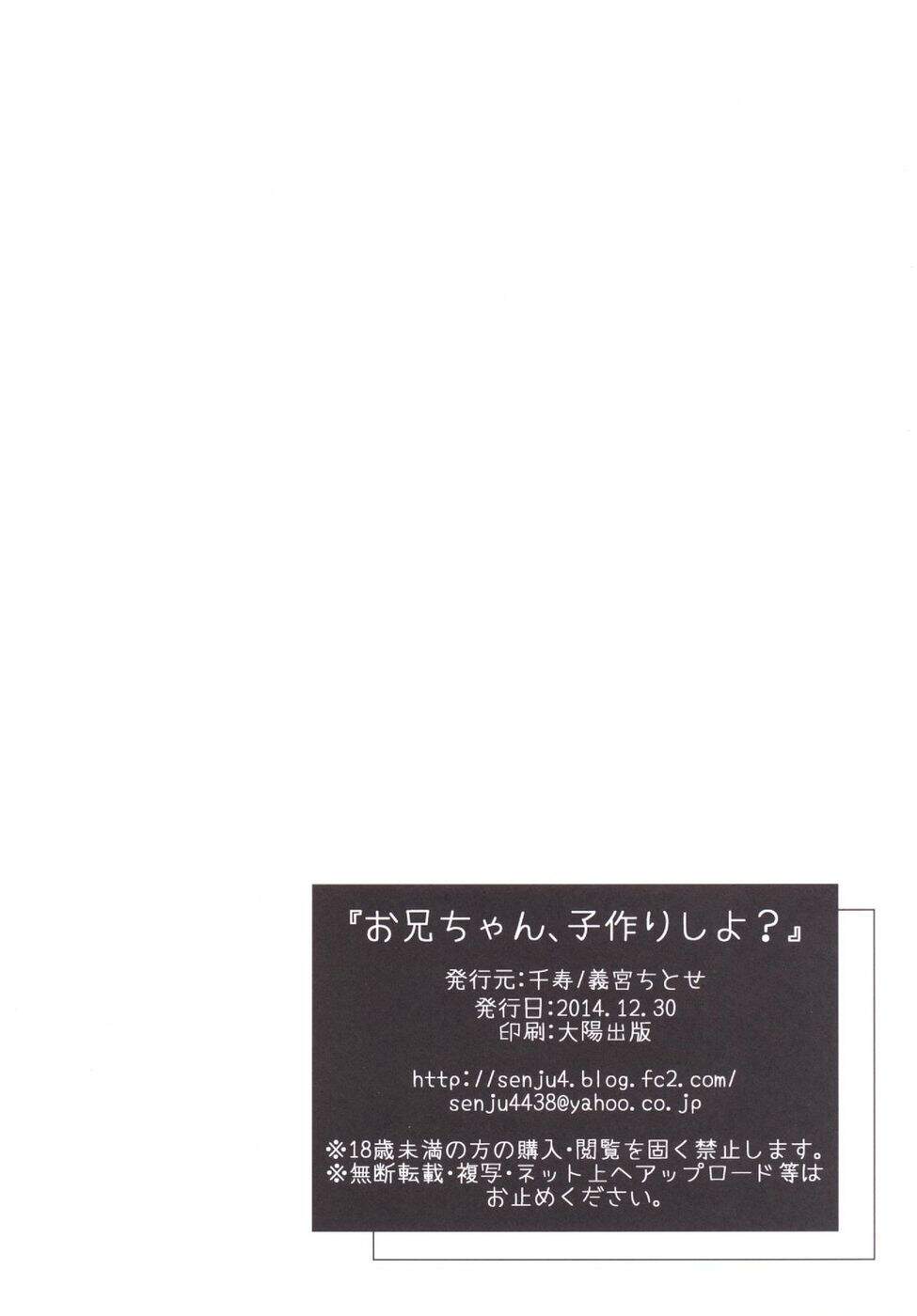 (C87) [千寿 (義宮ちとせ)] お兄ちゃん、子作りしよ? [英訳]