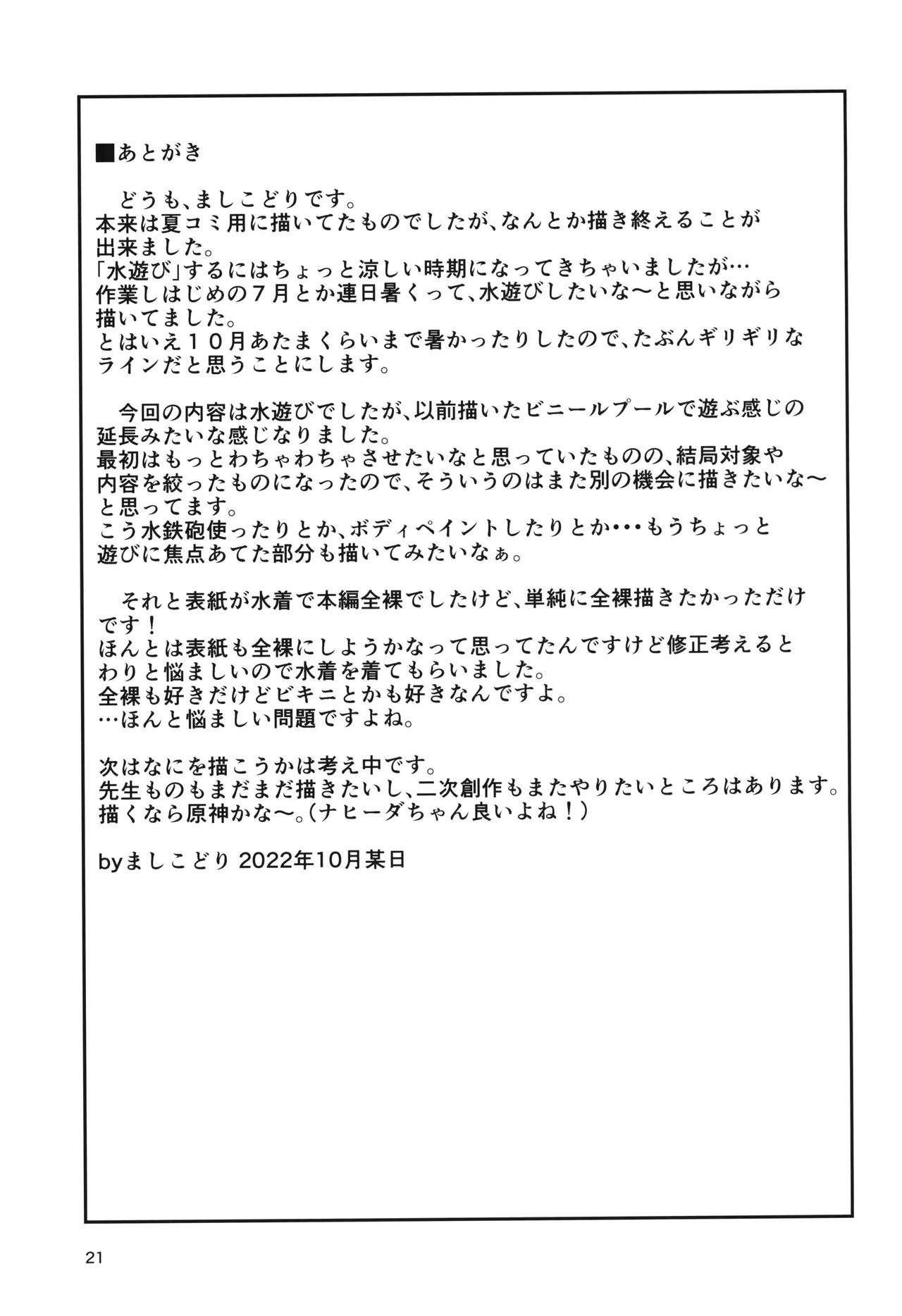 (COMIC1☆21) [Tori no Ya (Mashikodori)] Houkago no Mizu Asobi