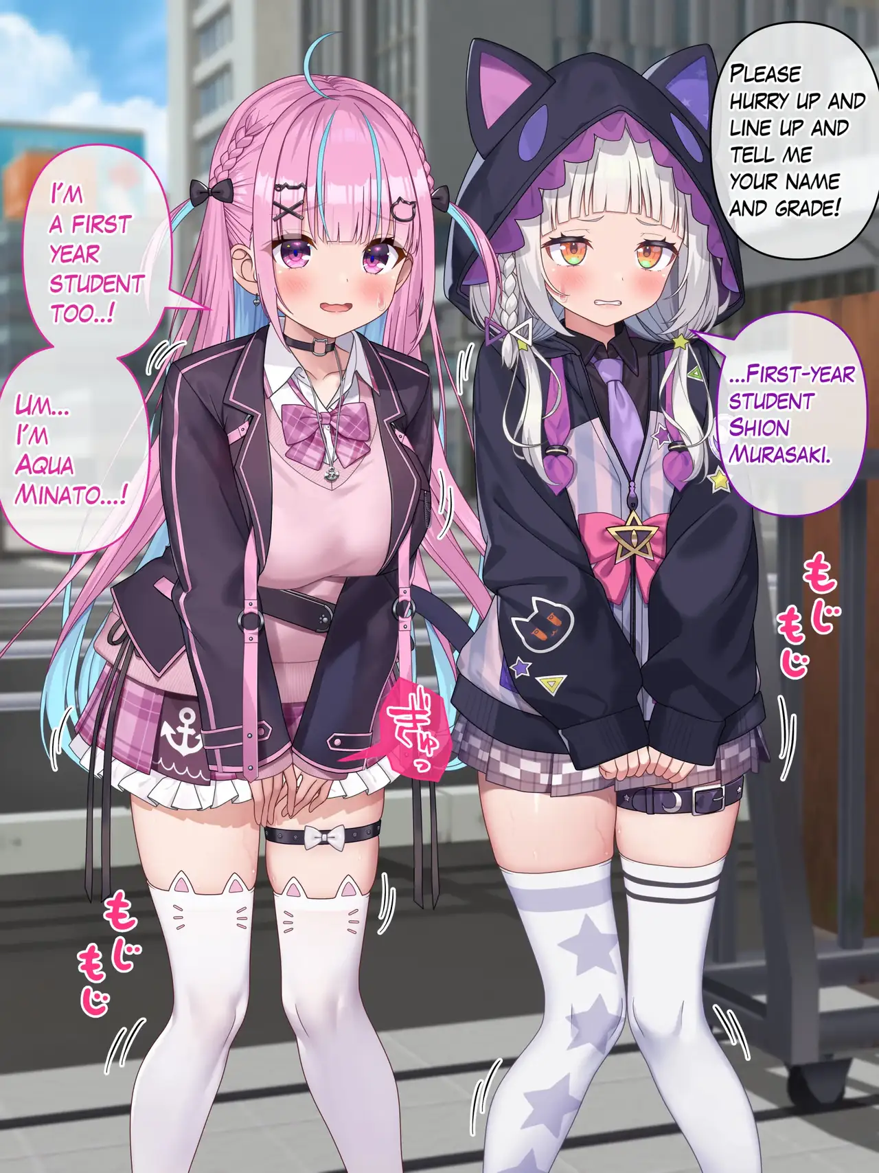 [にど] 服装検査 シ◯ン・あ◯あ編 (紫咲シオン、湊あくあ) [英語]