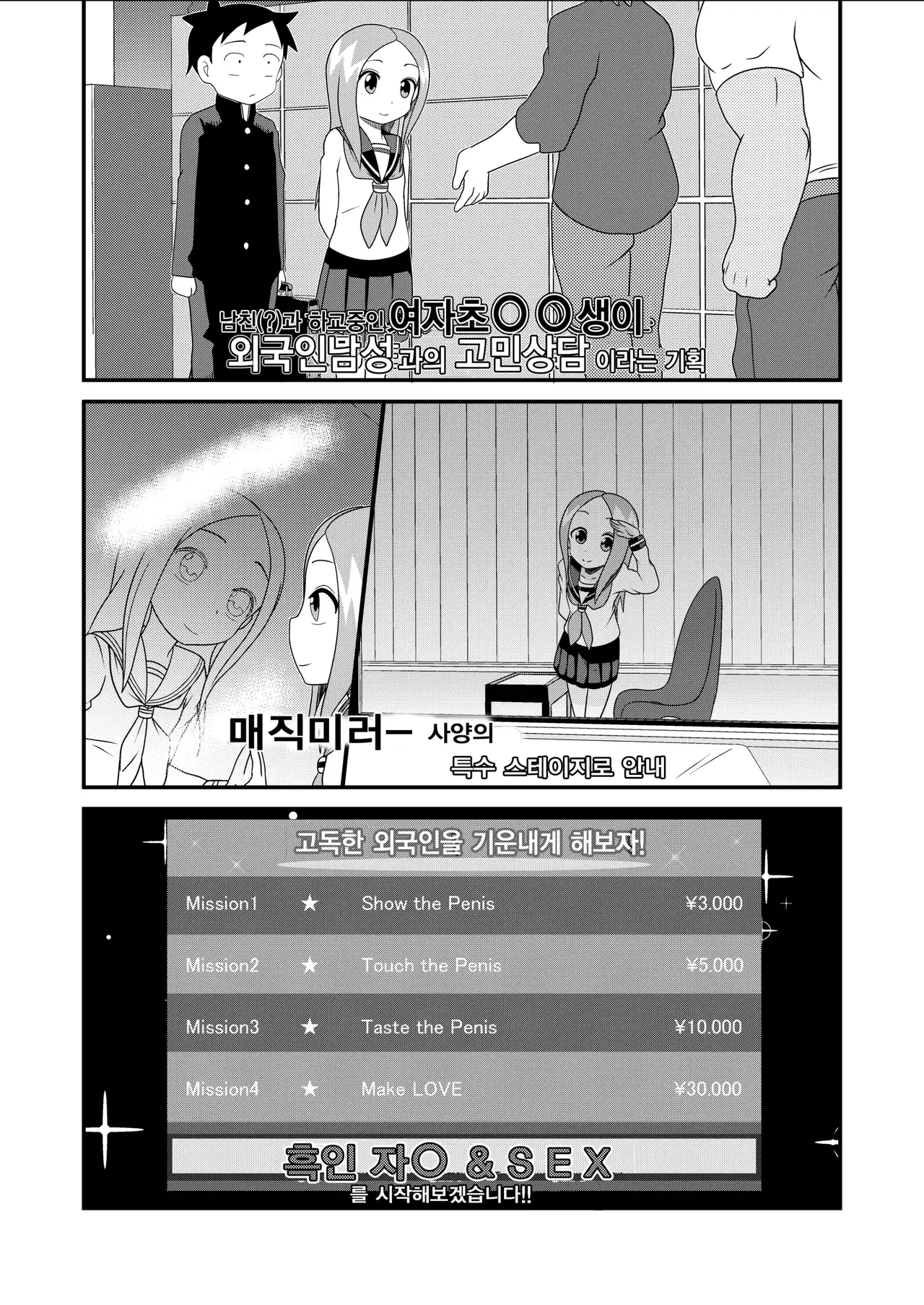 [Abujan (Roger Mango)] Karakai Jouzu no T.K.G.~ Magic Mirror Goshi no Nakadashi Chinpo Kui + Tengu-Tachi no Anal Naburi ~ (Karakai Jouzu no Takagi-san) [Korean] [실루엣21]